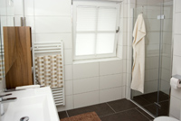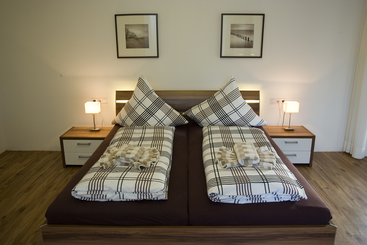 Einige Impressionen aus dem zweiten ebenerdigen Schlafzimmer mit Bad im Ferienhaus "Borkumland", direkt am Naturschutzgebiet Greune Stee.