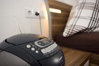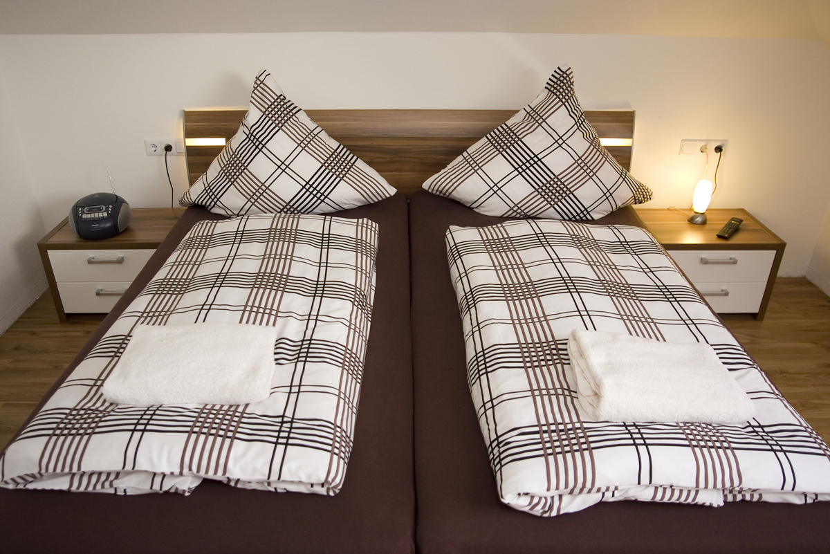 Impressionen des Schlafzimmer mit Doppelbett im Obergeschoss des Ferienhauses "Borkumland", direkt am Naturschutzgebiet Greune Stee.